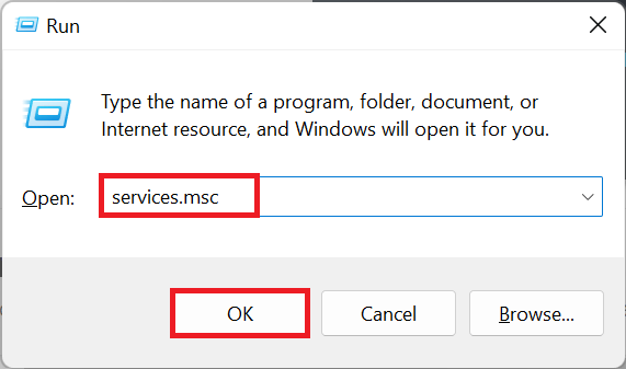 - Tekan Windows+R, ketik services.msc, lalu klik Ok