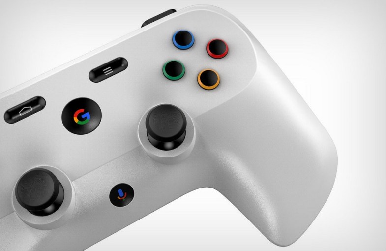 Namun berbeda dari DualShock 4 dengan touchpad-nya, gamepad Google ini menyajikan sejumlah tombol-tombol utility di sisi depan, dan salah satu yang menonjol adalah tombol berlogo microphone tak jauh dari joystick. Kehadirannya mengindikasikan dukungan fitur perintah suara, bisa jadi mengusung teknologi Google Assistant.
